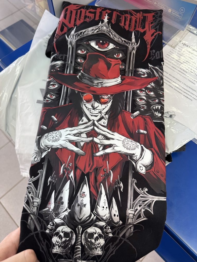 Шедевральная футболка! Качество ткани и принта порадовало. Алукард не был так хорош даже в некоторых iconic кадрах из OVA, как на вашей футболке. Спасибо!