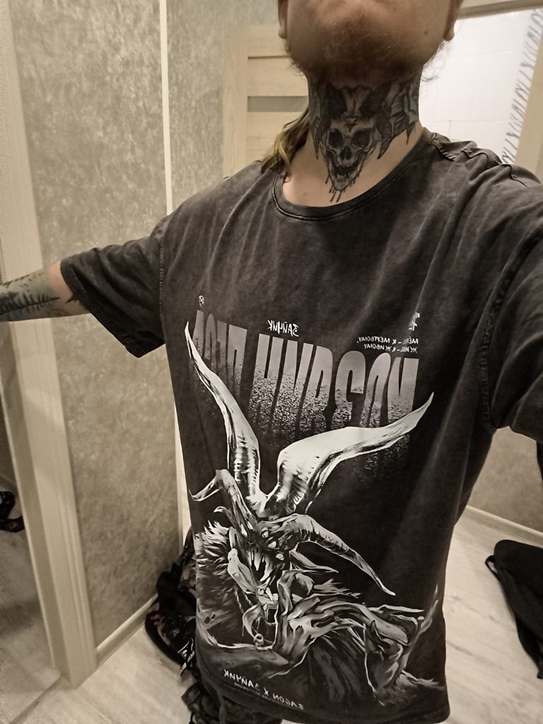 Впервые брал у вас. Был в Казанском магазине, мерил, но ничего для себя не подобрал. В размером не прогадал, но хотелось бы иметь возможность выбирать длинные футболки без большой ширины и огромных рукавов. Принт и качество ткани огонь, но без скидок дорого конечно)