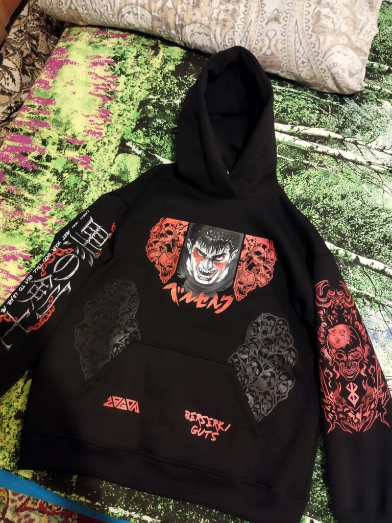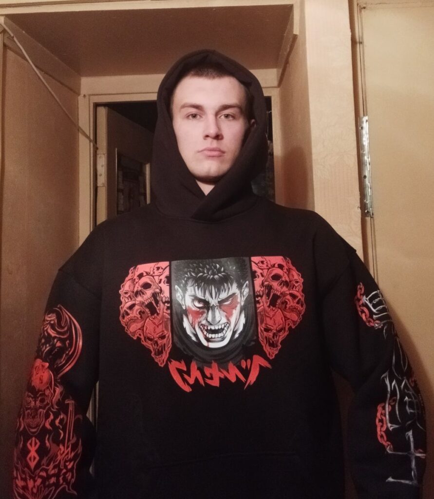 Худи прекрасное?. Но только момент с запахом(пахнем уксусом каким то не особо приятно) и момент с шеей очень неудобно влазить в горловину точнее она как будто маленькая!? А так все понравилось всем советую. Принты бомба надеюсь.после стирки ничего не отомрет и не отпадет иначе придется с одним глазом на худи смотреть?