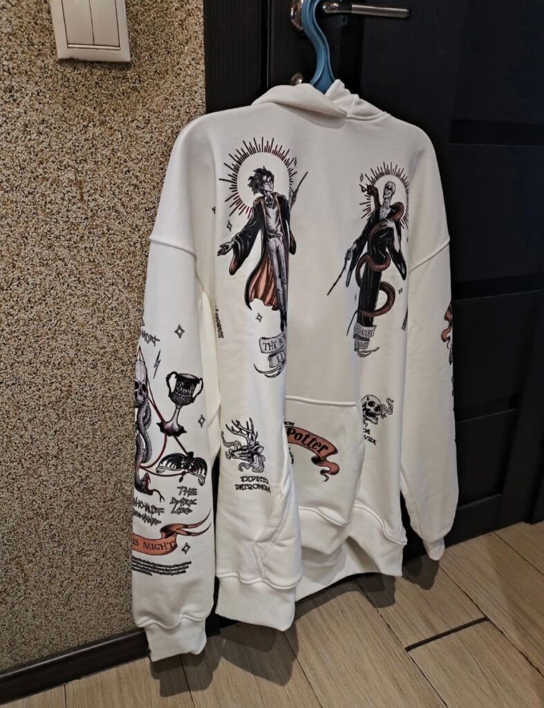 Шикарная вещь! Принты очень плотные и яркие, все картинки очень чёткие, даже чёрная метка на нужной руке. Цитаты тоже интересные, не клише. Сам материал очень приятный на ощупь и к телу, плотный. Теперь жду, когда у вас появятся белые штаны в комплект)))