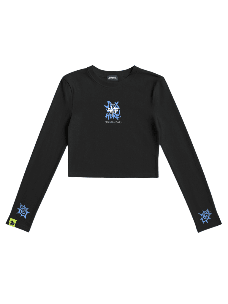 Кроп-лонгслив в минималистичном дизайне с яркой надписью «JINX WAS HERE».