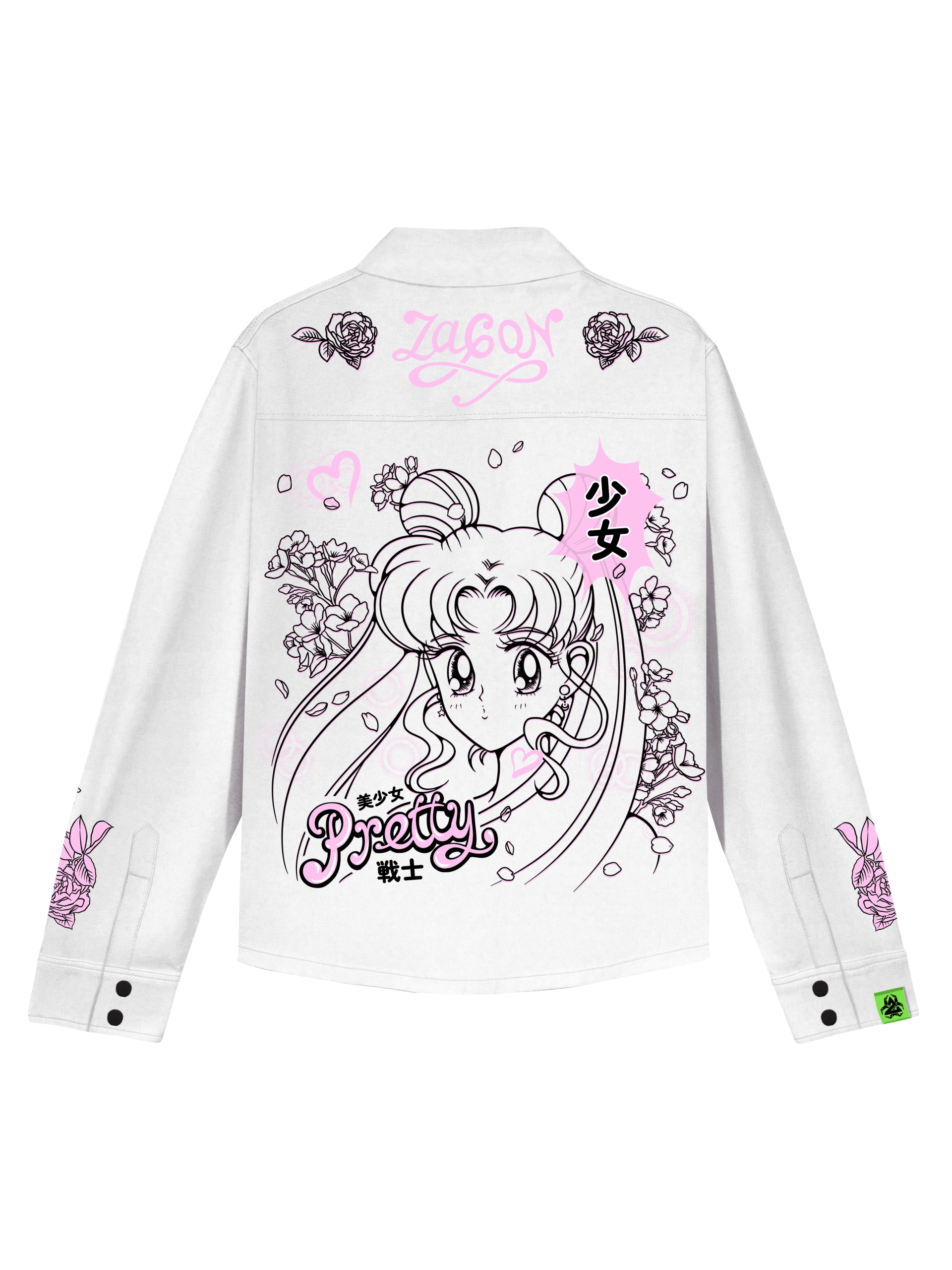 На спине — крупный портрет Усаги в винтажной манге-эстетике, надпись Pretty 少女 («милая воительница») и фирменный логотип ZAGON.