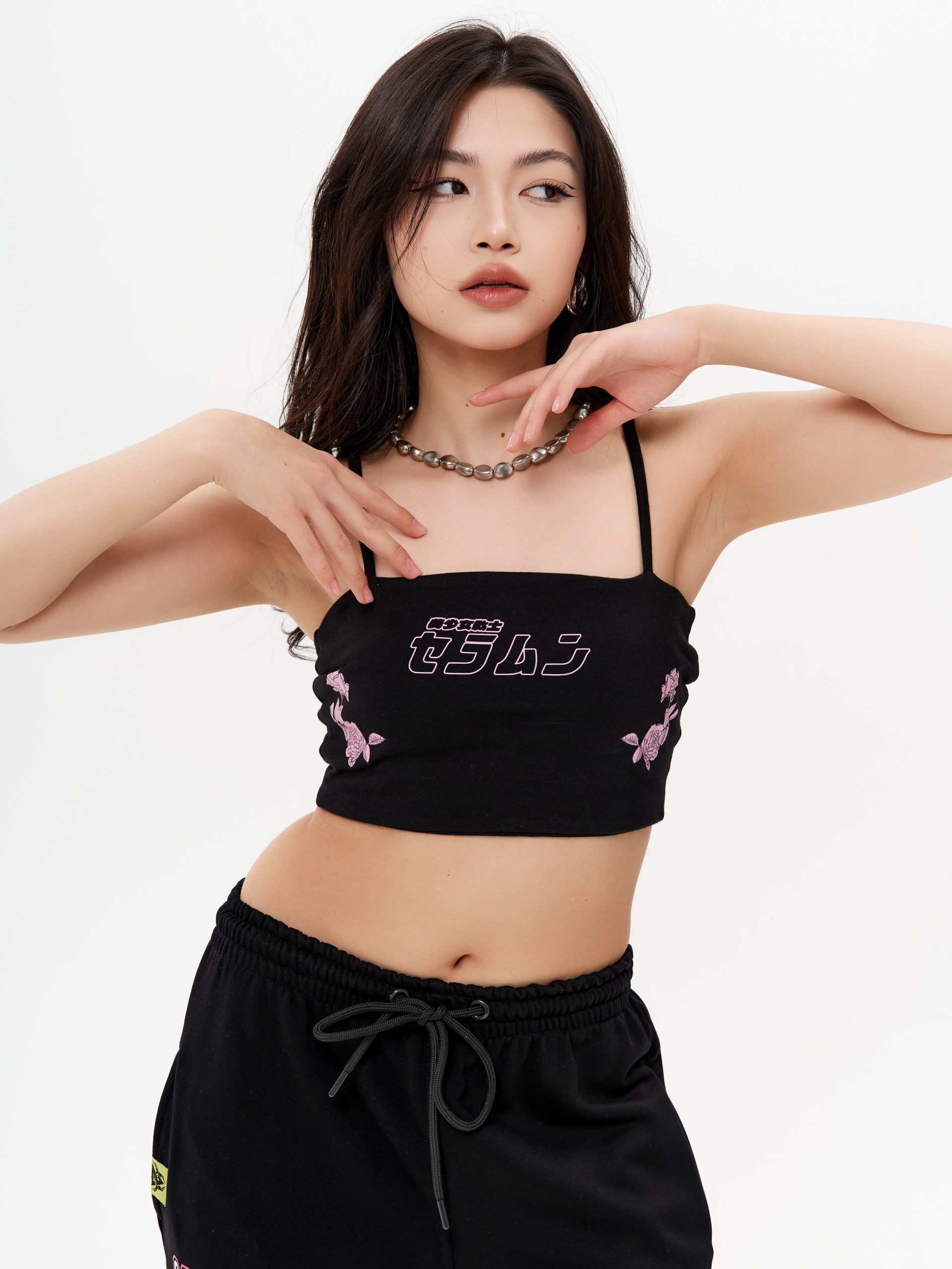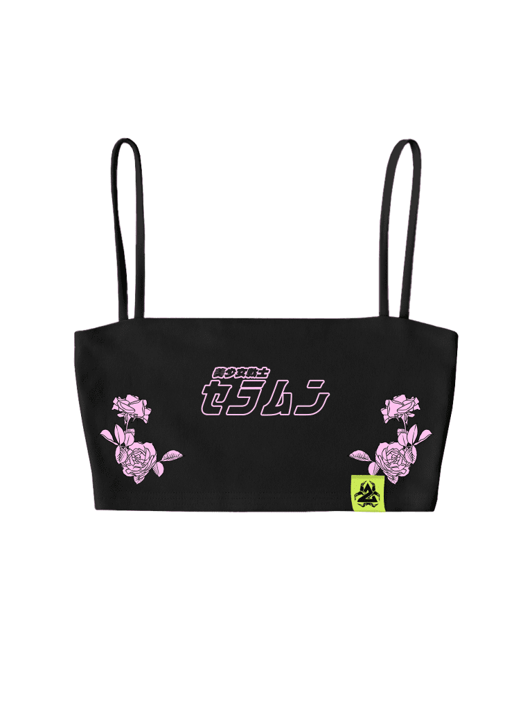Этот минималистичный топ на тонких бретелях создан в эстетике старых VHS-обложек и романтики шодзё-аниме.