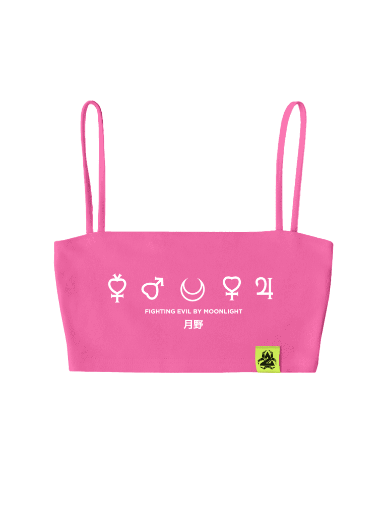 Укороченный топ с тонкими бретелями, вдохновлённый эстетикой воинов планет.