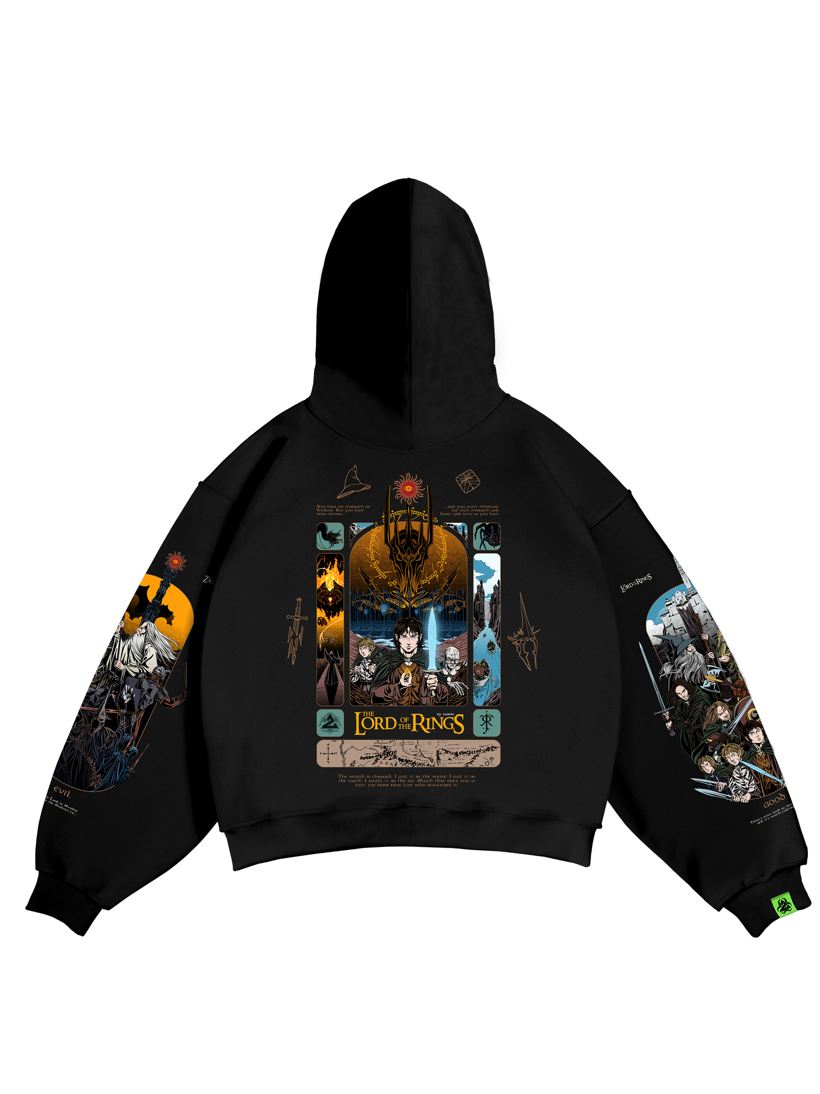 Из незначительных минусов — текст стихотворения под изображениями эльфов, гномов и людей с кольцами практически нечитаемый, поскольку слишком мелкий и «размывается». Все остальные текста максимально четко читаемые