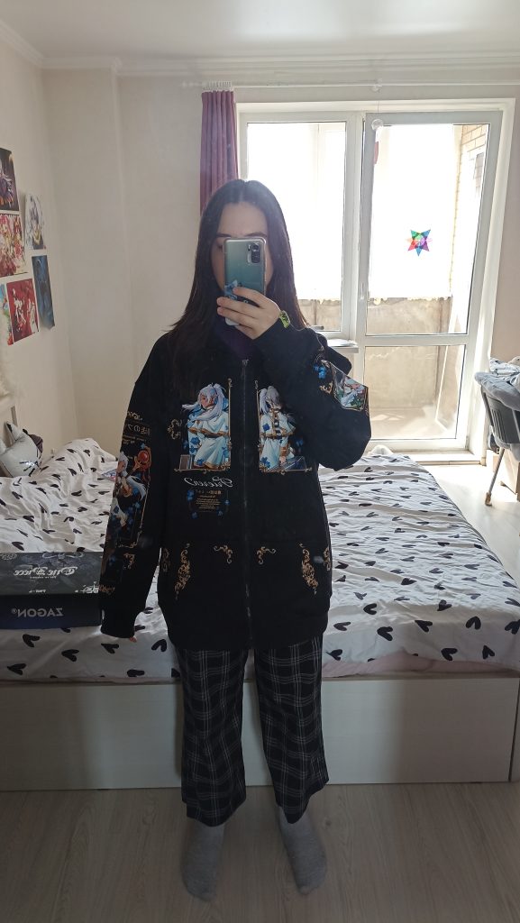 Но, есть один незначительный минус — вся кофта в какой-то мелкой белой ворсе (на одном из фото видно). Думаю могли бы и роликом для одежды пройтись). Но не считая этого все хорошо). Спасибо вам большое за это творение! Теперь хочу заказать у вас что нибудь ещё)❤️