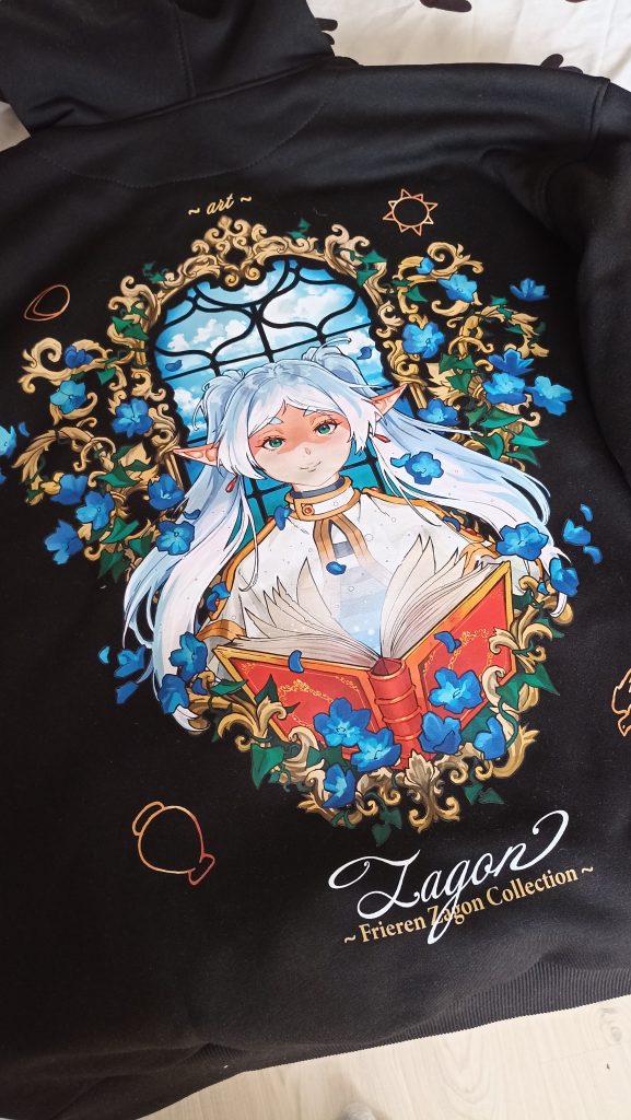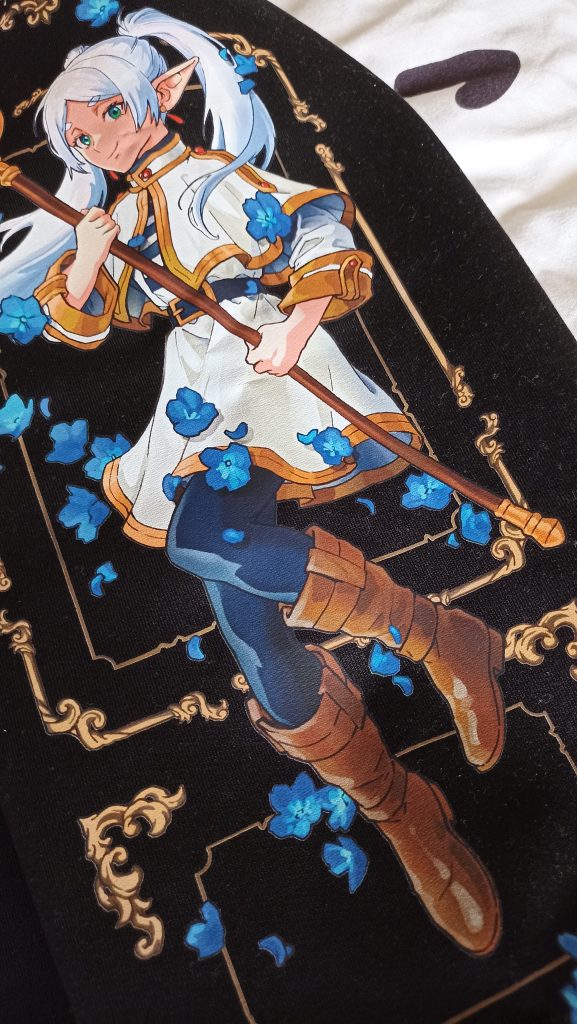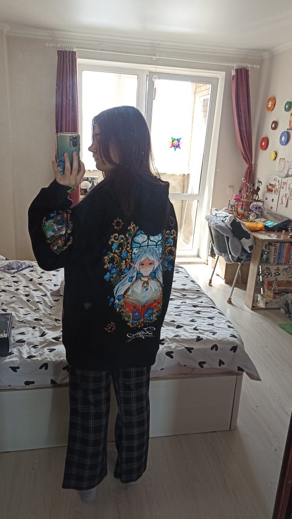 Единственные, у кого адекватный мерч по фрирен. По срокам всë в пределах указанной информации. Качество хорошее, плотная ткань, принт хороший (хотя это и не принт, хз как называется фактурный принт). Огромный плюс — не жарко, худи легкое, от 0 до 10 градусов с верхней одеждой, и от 10 до 20 градусов без верхней одежды. Это особенно важно, так как имеется худи от небезызвестных, и оно очень теплое. Крч чотка