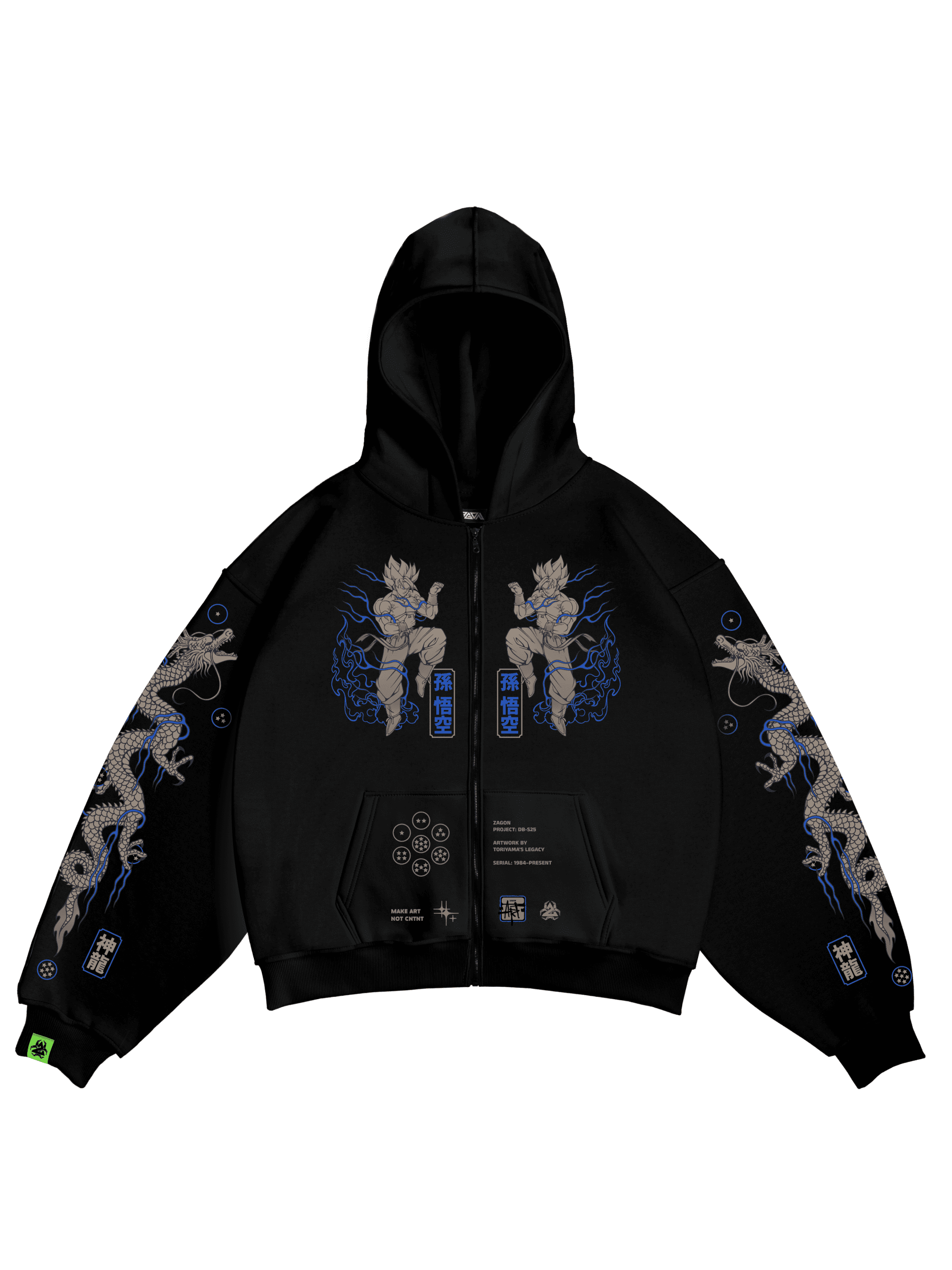 Зип-худи, вдохновлённая культовым аниме Dragon Ball, объединяет в себе энергетику Супер Саян Гоку, мистику Шенрона и эстетику уличной моды.